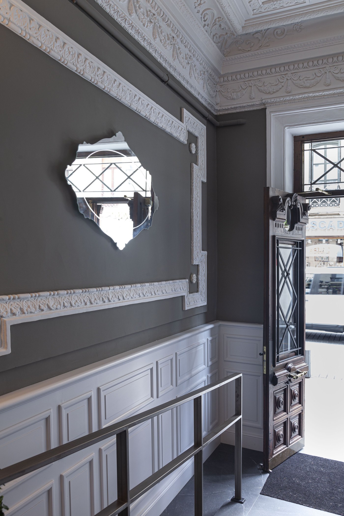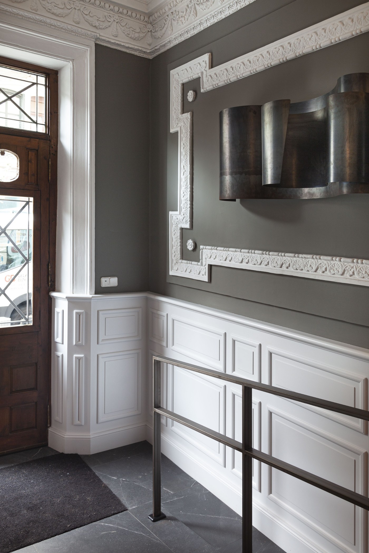 Hablamos de un edificio del Ensanche de Bilbao; estilo clásico para unas viviendas centenarias de construcción mixta. En el interior una puerta dividía dos ambientes, la zona de escaleras y la zona de buzones y ascensor.